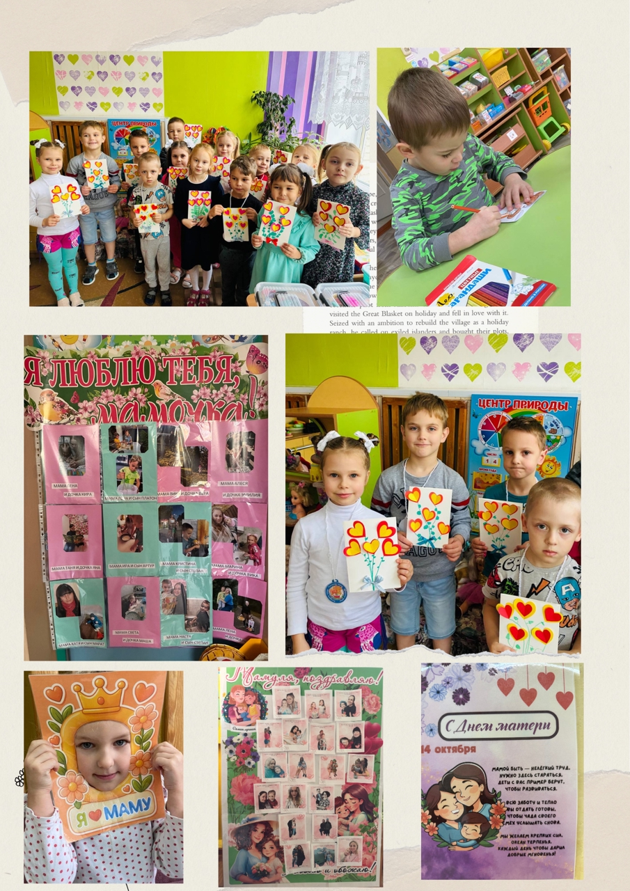 14.10.202514 октября в нашей стране отмечают самый теплый и нежный праздник — «День Матери». В нашем детском саду в этот праздничный день прошел конкурс чтецов «Моя мама». Еще ребята подготовили для мам праздничные открытки. В группах организовали фотовыставку «Моя любимая мама».
